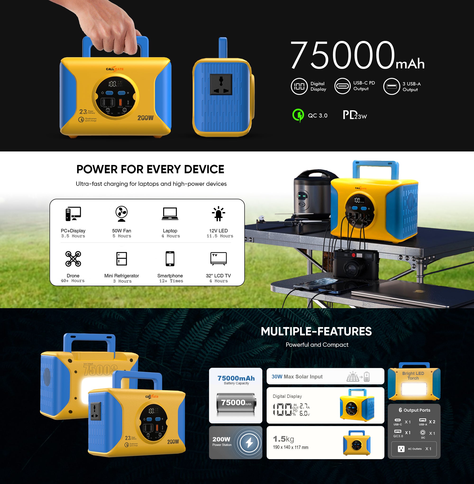 - Massive Battery & Power Output: 75000mAh lithium-Ion battery and 200W power output for uninterrupted power supply.