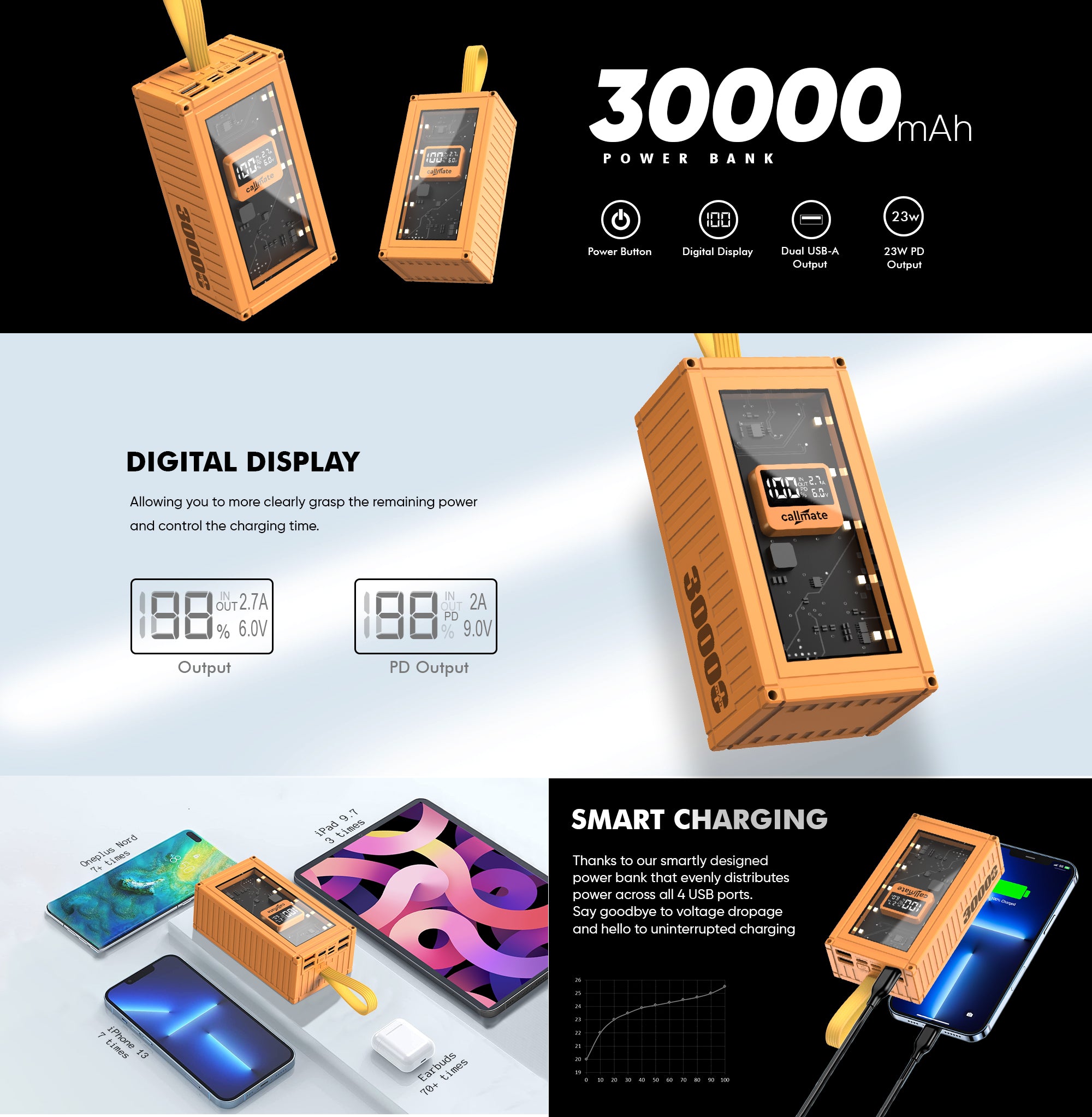 It features a massive 30,000mAh capacity, ideal for charging multiple devices multiple times.