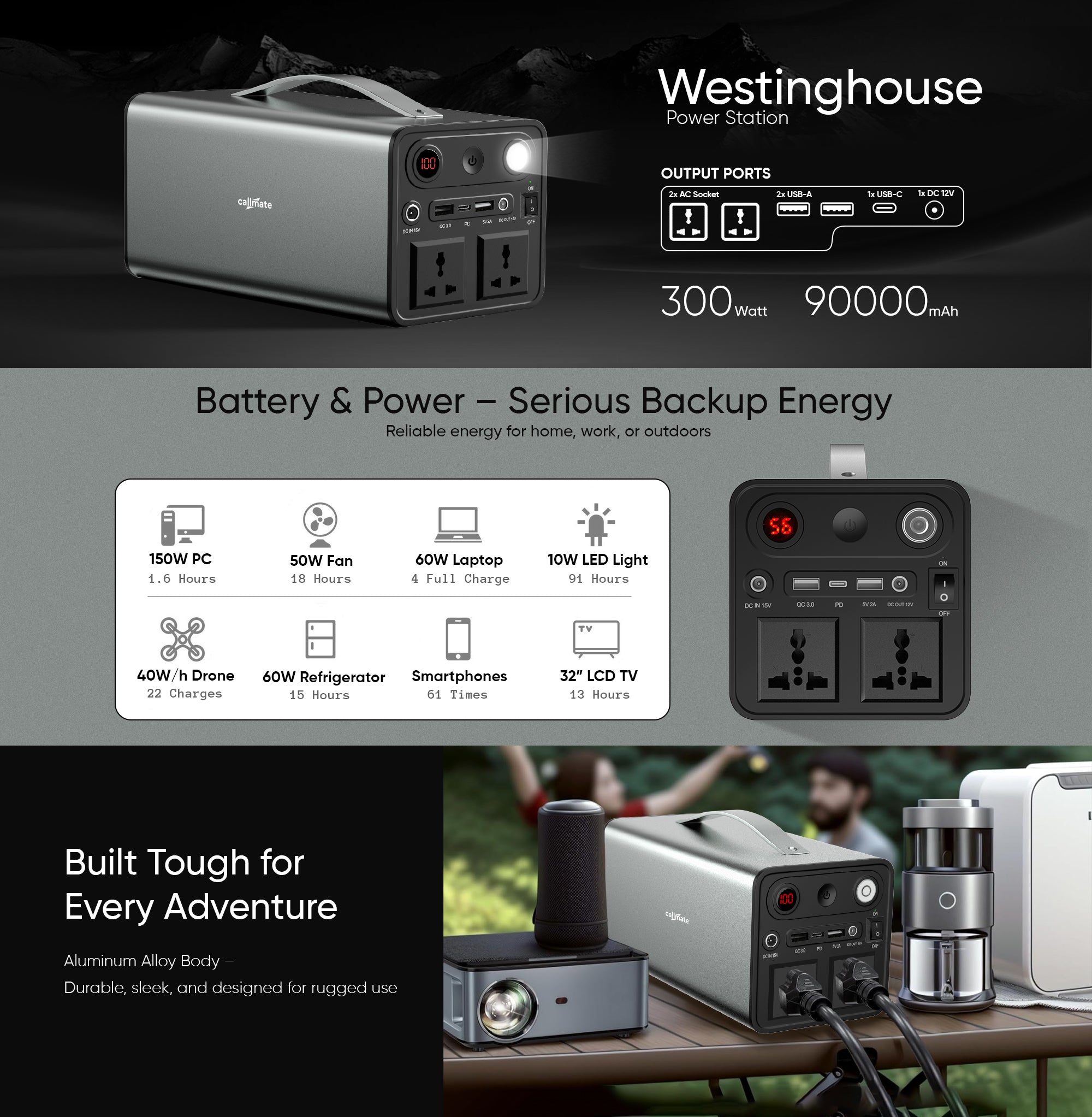 300W All in One Portable Power Station: Stay powered anytime, anywhere with CALLMATE compact yet powerful 300W station. Perfect for laptops, mobiles, fans, and even mini fridges.